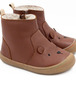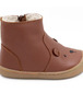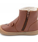Šie apavi izgatavoti no augstas kvalitātes, mitrumu atgrūdošas dabīgās ādas, kas sargā mazas kājiņas no mitruma un aukstuma. Zābaciņu iekšpusi silda mīksts, mākslīgais kažociņš, nodrošinot komfortu un siltumu temperatūrās no aptuveni +7 līdz -10 °C – ideāli valkāšanai jau no apkures sezonas sākuma.