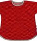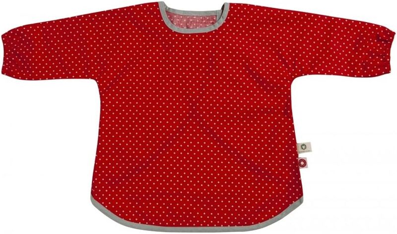 Organiskās kokvilnas uzsvārcītis pārklāts ar akrila pārklājumu, lai būtu vieglāk kopjams un šmuci nelaistu cauri, bet bērns tajā justos labi un nesvīstu. Ar piedurknītēm, nu tā, lai pavisam droši :)  Velcor aizdare. Derēs bērnam pēc 18 mēnešu vecuma gan ēšanai, gan radošai šmucei virtuvē vai pie molberta. Izmērs: platums (apakšējā daļā) 40 cm