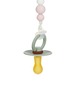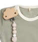 Pateicoties Lassig māneklīša turētājam no Little Chums kolekcijas māneklītis vairs nepazudīs Tas viegli piestiprinās pie apģērba ar klipsīti, kas iestrādāts koka pelēna formas turētājā. Posmiņi veidoti no silikona, kas nesatur BPA un ir drošs mazuļa zobiņiem un var tikt arī pagrauzts, lai nomierinātu kniesošās smaganiņas.Māneklīti var piestiprināt ar silikona gredzenu, tādēļ t