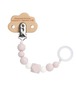 Pateicoties Lassig māneklīša turētājam no Little Chums kolekcijas māneklītis vairs nepazudīs Tas viegli piestiprinās pie apģērba ar klipsīti, kas iestrādāts koka pelēna formas turētājā. Posmiņi veidoti no silikona, kas nesatur BPA un ir drošs mazuļa zobiņiem un var tikt arī pagrauzts, lai nomierinātu kniesošās smaganiņas.Māneklīti var piestiprināt ar silikona gredzenu, tādēļ tas der gan māneklīšiem ar riņķīti, gan bez tā.