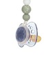 Pateicoties Lassig māneklīša turētājam no Little Chums kolekcijas māneklītis vairs nepazudīs Tas viegli piestiprinās pie apģērba ar klipsīti, kas iestrādāts koka pelēna formas turētājā. Posmiņi veidoti no silikona, kas nesatur BPA un ir drošs mazuļa zobiņiem un var tikt arī pagrauzts, lai nomierinātu kniesošās smaganiņas.Māneklīti var piestiprināt ar silikona gredzenu, tādēļ tas der gan māneklīšiem ar riņķīti, gan bez tā.