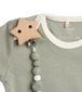 Pateicoties Lassig māneklīša turētājam no Little Chums kolekcijas māneklītis vairs nepazudīs Tas viegli piestiprinās pie apģērba ar klipsīti, kas iestrādāts koka pelēna formas turētājā. Posmiņi veidoti no silikona, kas nesatur BPA un ir drošs mazuļa zobiņiem un var tikt arī pagrauzts, lai nomierinātu kniesošās smaganiņas.Māneklīti var piestiprināt ar silikona gredzenu, tādēļ t