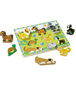 Biezās puzles ir lieliskas - ar īpaši bieziem koka gabaliņiem, tās ļauj ne vien attīstīt acu-roku koordināciju, meklēt katra gabaliņa īstās vietiņas pēc formas un atbilstoša zīmējuma uz dēlīša pamatnes, bet arī rotaļāties ar pašiem gabaliņiem kā figūriņām, jo tie ir novietojami arī vertikāli. Puzle ir 27x30 cm liela, izgatavota no koka ar netoksiskām krāsiņām un ikviens gabaliņš ir krāsota koka un izturēs visas mazuļa rotaļas.