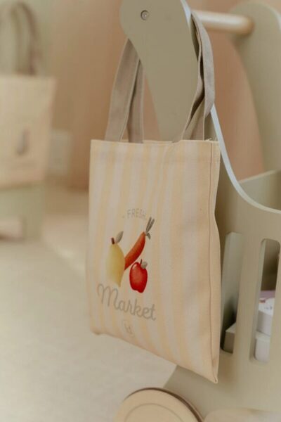 Iepirkšanās tagad ir piedzīvojums! Ar šiem Little Dutch koka iepirkumu ratiņiem var doties iepirkties uz lielveikalu. Pateicoties plašajai uzglabāšanas vietai, visi pārtikas produkti ietilpst ratiņos, pat ja jūsu saraksts ir garš. Koka klipsis droši notur iepirkumu sarakstu vietā, lai nekas netiktu aizmirsts. Komplektā ietilpst dažādi pārtikas produkti un iepirkumu maisiņš. Ratiņu priekšpusi rotā jautrs attēls, kas padara spēlēšanās laiku vēl jautrāku. Vai vēlaties vislabāko iepirkšanās pieredzi? Pievienojiet ratiņus tirgus stendam un izbaudiet nebeidzamu iepirkšanās prieku!