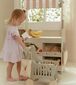 Iepirkšanās tagad ir piedzīvojums! Ar šiem Little Dutch koka iepirkumu ratiņiem var doties iepirkties uz lielveikalu. Pateicoties plašajai uzglabāšanas vietai, visi pārtikas produkti ietilpst ratiņos, pat ja jūsu saraksts ir garš. Koka klipsis droši notur iepirkumu sarakstu vietā, lai nekas netiktu aizmirsts. Komplektā ietilpst dažādi pārtikas produkti un