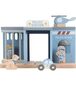 Zaglis ir kustībā! Radi aizraujošus policijas stāstus ar šo koka policijas depo. Komplektā ietilpst policijas automašīna, helikopters, policists, zaglis un pat policijas suns! Iecirknī ir cietuma kamera ar restēm un helikoptera nosēšanās laukumu. Ieslodz zagli un rūpējies par pilsētas drošību.
