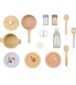Virtuve ir pilnībā aprīkota! Komplektā ietilpst šādi piederumi: 3 x koka šķīvji, 3 x dažādas lāpstiņas, panna, katls, katla vāks, sālstrauks, piparu trauciņš, olīveļļas pudele, kā arī divu veidu olas.