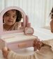 Šis koka kosmētikas galdiņš no Little Dutch ir katras meitenes sapnis un ir paredzēts bērniem, lai mudinātu viņus izmantot savu iztēli. Tualetes galdiņam ir rotējošs spogulis un dažādi skaistumkopšanas līdzekļi (ne īsti), tostarp matu suka, smaržas, lūpu krāsa, acu ēnas, nagu vīle un nagu laka.Galdiņam ir arī atvilktne, kur var salikt savas matu gumijas un sprādzītes. Lieliski piemērots maziem skaistumkopšanas faniem, kuriem patīk sevi dekorēt un palutināt.