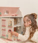 Šī skaistā māja ir baltā krāsā, ar rozā jumtu un koka slēģiem, kurus var atvērt un aizvērt. Jumtu var atvērt, lai rotaļātos vēl jautrāk, un daļu jumta var pārveidot par dārzu. Mājas interjers ir ļoti detalizēts un dekorēts ar skaistām ilustrācijām gan iekšpusē, gan ārpusē. Leļļu namiņā ir divas lelles, Džims un Rosa, tāpēc bērni var sākt spēlēties uzreiz. Mājā ir dzīvojamā istaba, virtuve, vannas istaba, mammas un tēta guļamistaba un bērnu istaba. Katra istaba ir mēbelēta ar atbilstošām mēbelēm un aksesuāriem, nodrošinot reālistisku un pievilcīgu rotaļu pieredzi. Šī leļļu māja piedāvā stundām ilgu rotaļu laiku, un to var vēl vairāk paplašināt ar papildu rotaļu komplektiem. Tas ir lielisks veids, kā bērni var izbaudīt savu iztēli un radošumu.