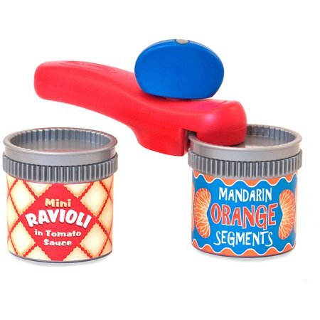 Spēlēm virtuvē - konservu attaisāmais un 2 vairākkārt taisāmas vaļā - ciet bundžiņas. Šis būs lielisks papildinājums, ja jums jau ir rotaļu virtuve - retāk redzēta, bet ļoti interesanta mototiku attīstoša rotaļlieta bērna lomu spēlēm.