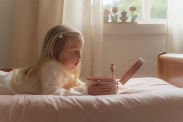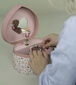 Muzikāla rotaslietu uzglabāšanas lādīte ar spogulīti mazajām dāmām. Atverot kastītes vāciņu sāks skanēt skaista melodija un mazā feja griezīsies uz riņķi.