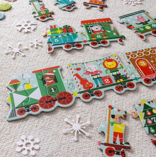 Čuk-čuk! Iekāpiet Ziemassvētku vilciena formas grīdas puzlē!